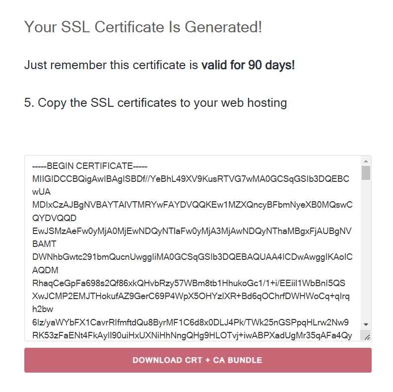 Если вы все правильно проделали, вы получите готовый сертификат на 90 дней.