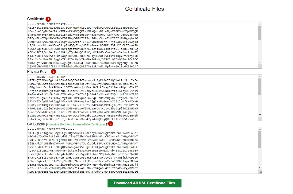 После этого, можете сразу же нажимать по кнопке "Download SSL Certificate". После вас перенаправит на новую страницу с файлами сертификата: