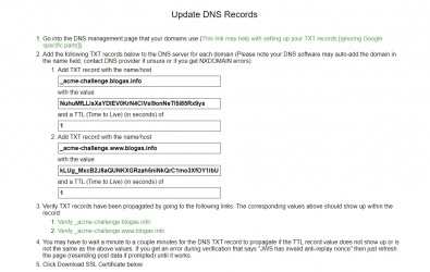 - Если вы все правильно выполнили, TXT записи прописали, ждем минимум минут 15 (это очень редко бывает) и до 12-72 часов максимум (максимальный срок обновления DNS 3 суток). Наберитесь терпения и регулярно проверяем обновились ли ваши записи со стороны sslforfree. Для проверки достаточно переходить по ссылками которые предложены ниже.
