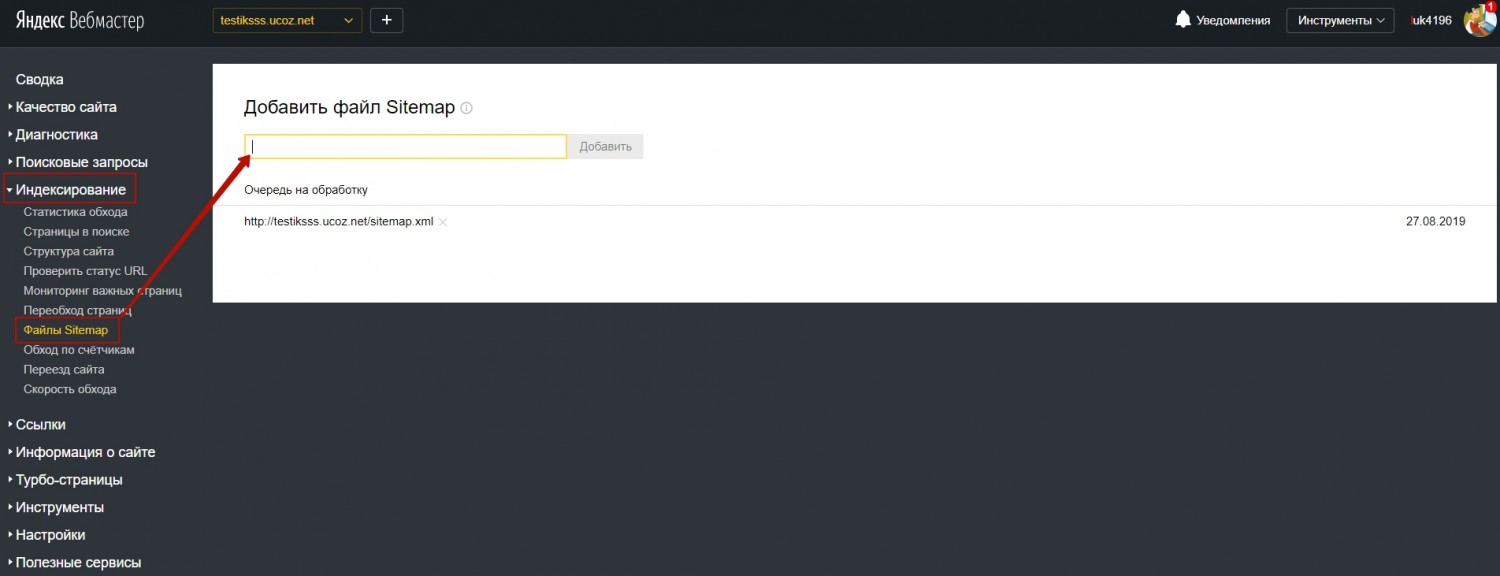 Добавляем карту сайта в вебмастер Яндекса