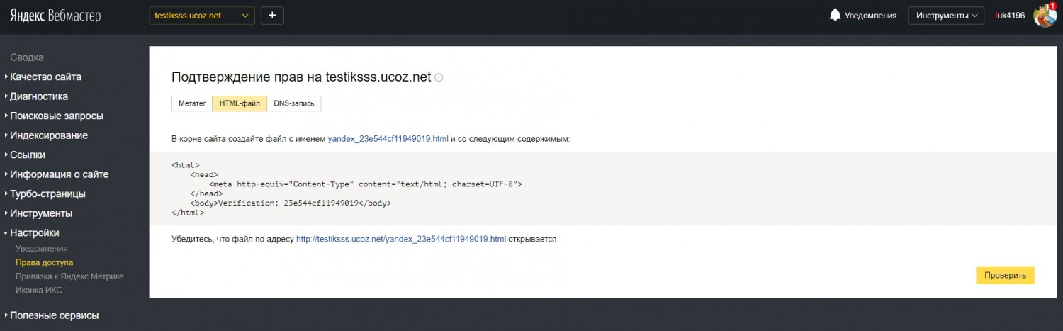 Подтверждаем права собственности на сайт