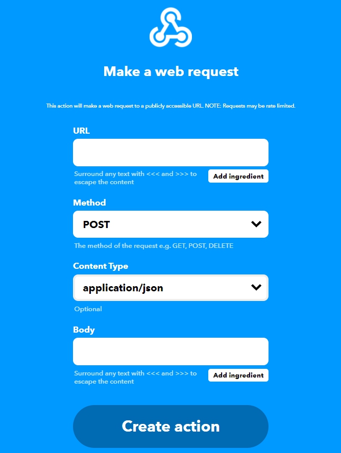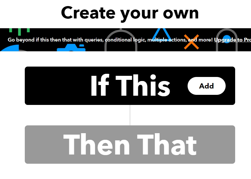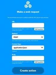 Нажимаем на "That" и ищем Maker Webhook, "Make a web request" — с помощью этого модуля можно отправлять запросы к любым сервисам. В нашем случае — к боту в Telegram. На странице: https://ifttt.com/create жмем кнопку ADD.
