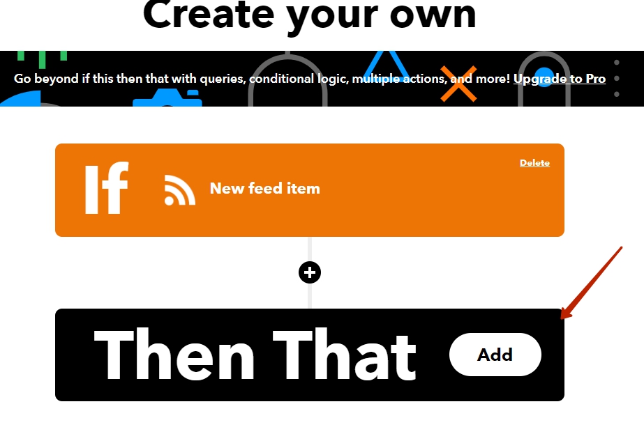 Создаем условие для постинга новостей с нашего RSS в канал телеграм. Как показано на скриншоте выше, жмем кнопку Create.