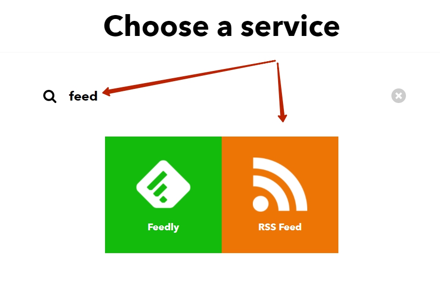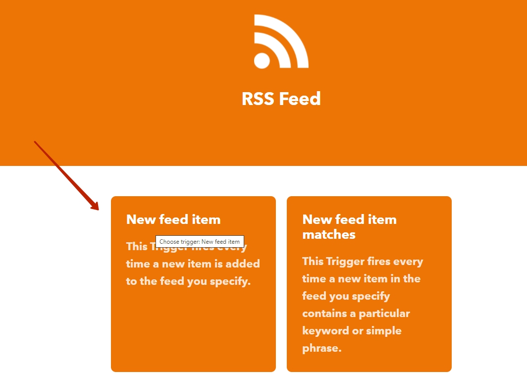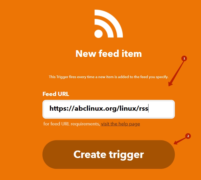 Далее жмем по кнопке "If This". Находим в списке функций триггер Feed, New feed item и указываем URL-адрес нашей RSS-ленты. Ниже приведу примеры RSS, которые нужно использовать:
